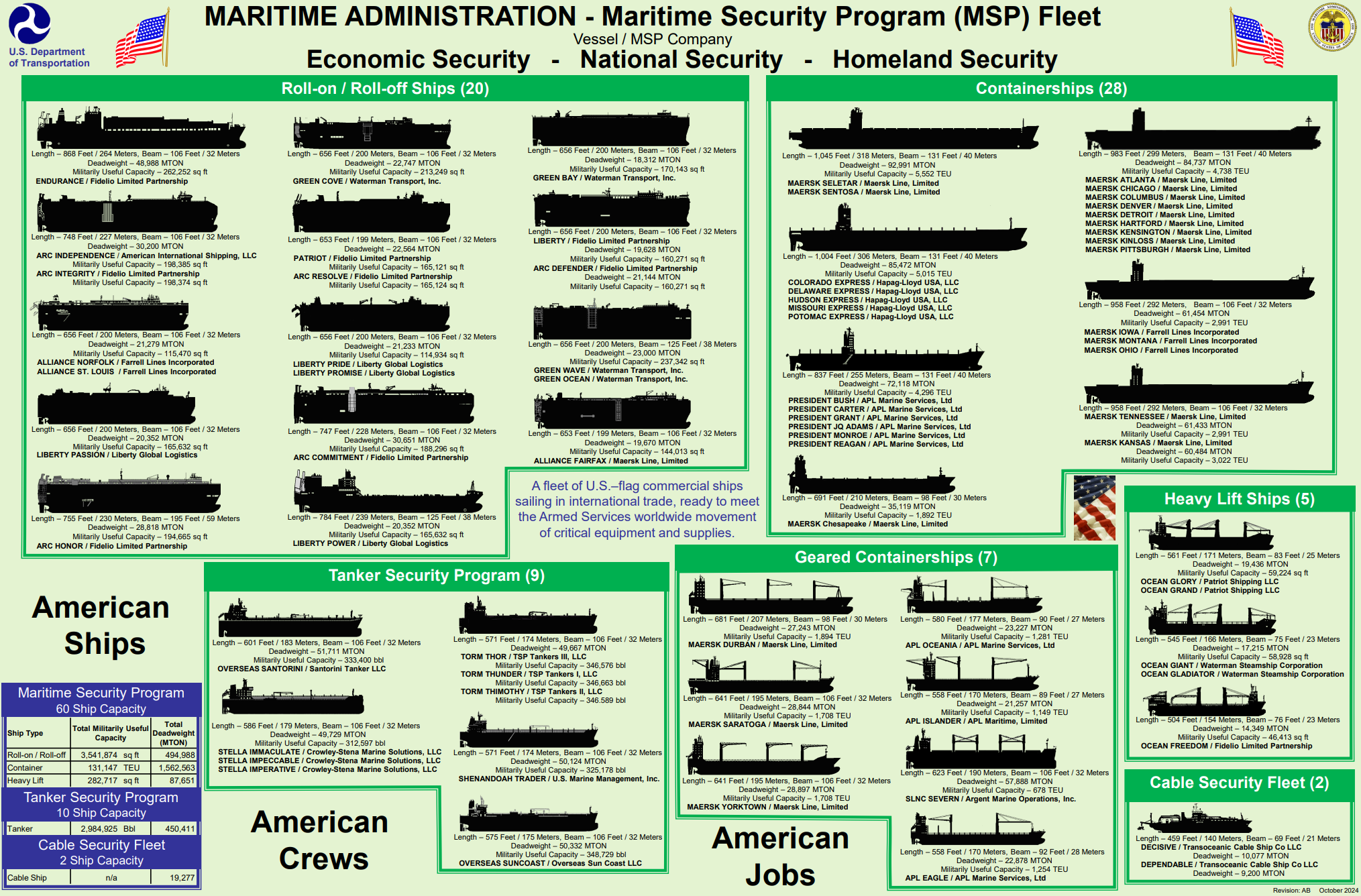 | Mærsk tegner sig for 23 ud af 60 skibe i USA's Maritime Security Program (MSP). De udgør langt over halvdelen af programmets samlede tonnage. De stilles til rådighed for USA's Krigsministerium, når supermagten beder om det. Mærsk får årligt 835 mio. kr for ulejligheden. Når USA angriber Grønland, vil en del af krigsmateriellet blive transporteret på Mærsk skibe. Rederiet Torm tegner sig for yderligere 3 skibe i MSP programmet, så Danmark er i stor skala villig backup for USA's krigseventyr rundt om på kloden. (Maritime Security Program) |